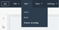 Navigate to the theme settings in the top left corner and select "Edit" -> "Theme: Growbig" to access the theme settings.